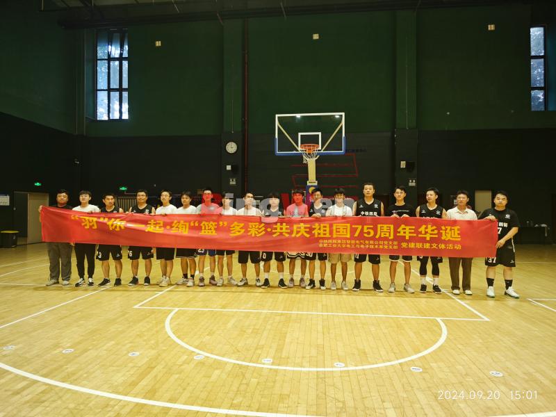 正值祖国成立75周年之际,为激励广大干部职工振奋精神,坚定爱国信念,苦干实干,为企业发展建功立业。中铁四局集团智能电气公司党支部联合合肥工业大学电工与电子技术系党支部组织开展“羽”你一起,绚“篮”多彩,共庆祖国75周年华诞文体活动,旨在加强校企合作意识,服务新质生产力,增进校企双方友谊,“凝心聚力产学研,携手共进促发展”,以优异成果向祖国成立75周年献礼。
